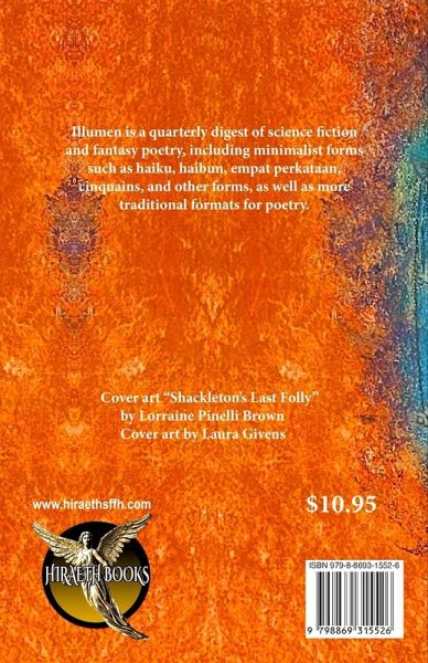Illumen is a quarterly digest of science fiction and fantasy poetry, including minimalist forms such as haiku, haibun, empat perkataan, cinquains, and other forms, as well as more traditional formats for poetry. Featuring Stephanie Smith, Lee Clark Zumpe, Amirah al-Wassif, Sandy DeLuca, Jacqueline West, Alan Ira Gordon, and many more!
