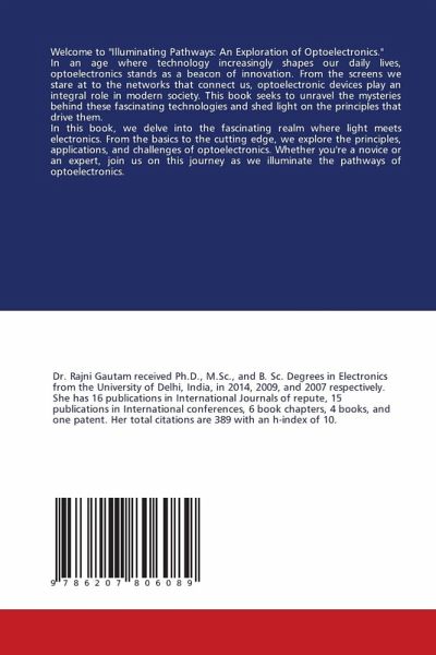 Welcome to "Illuminating Pathways: An Exploration of Optoelectronics."In an age where technology increasingly shapes our daily lives, optoelectronics stands as a beacon of innovation. From the screens we stare at to the networks that connect us, optoelectronic devices play an integral role in modern society. This book seeks to unravel the mysteries behind these fascinating technologies and shed light on the principles that drive them.In this book, we delve into the fascinating realm where light meets electronics. From the basics to the cutting edge, we explore the principles, applications, and challenges of optoelectronics. Whether you're a novice or an expert, join us on this journey as we illuminate the pathways of optoelectronics.