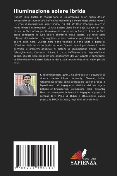 Questo libro illustra la realizzazione di un prototipo di un nuovo design accessibile per aumentare l'efficienza dell'energia solare negli edifici, ovvero i sistemi di illuminazione solare ibrida. Gli HSL sfruttano l'energia solare in modo diverso e innovativo. La luce solare viene incanalata attraverso fasci di cavi in fibra ottica per illuminare le stanze senza finestre. I cavi in fibra ottica conducono la luce solare all'interno della stanza. Sul tetto sono collocati dei collettori che regolano la loro posizione per indirizzare la luce solare sulle fibre. Queste fibre sono flessibili e sono unite a barre di diffusione della luce che la disperdono. Questa tecnologia risolverà molte questioni e problemi associati ai sistemi di illuminazione attuali, come l'abbagliamento, l'eccesso di luce, il costo, l'efficienza e la disponibilità di spazio. Questo libro presenta una panoramica dei vari aspetti e applicazioni dell'illuminazione solare ibrida e della sua implementazione nelle piccole case.