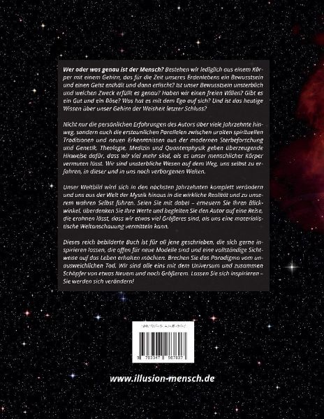 Wer oder was ist der Mensch? Welche Fähigkeiten besitzt er? Informationen zum Titel Wer oder was genau ist der Mensch? Bestehen wir lediglich aus einem Körper mit einem Gehirn, das für die Zeit unseres Erdenlebens ein Bewusstsein und einen Geist enthält und dann erlischt? Ist unser Bewusstsein unsterblich und welchen Zweck erfüllt es genau? Haben wir einen freien Willen? Gibt es ein Gut und ein Böse? Was hat es mit dem Ego auf sich? Und ist das heutige Wissen über unser Gehirn der Weisheit letzter Schluss? Nicht nur die persönlichen Erfahrungen des Autors über viele Jahrzehnte hinweg, sondern auch die erstaunlichen Parallelen zwischen uralten spirituellen Traditionen und neuen Erkenntnissen aus der modernen Sterbeforschung und Genetik, Theologie, Medizin und Quantenphysik geben überzeugende Hinweise dafür, dass wir viel mehr sind, als es unser menschlicher Körper vermuten lässt. Wir sind unsterbliche Wesen auf dem Weg, uns selbst zu erfahren, in dieser und in uns noch verborgenen Welten. Unser Weltbild wird sich in den nächsten Jahrzehnten komplett verändern und uns aus der Welt der Mystik hinaus in die wirkliche Realität und zu unserem wahren Selbst führen. Seien Sie mit dabei - erneuern Sie Ihren Blickwinkel, überdenken Sie Ihre Werte und begleiten Sie den Autor auf eine Reise, die erahnen lässt, dass wir etwas viel Größeres sind, als uns eine materialistische Weltanschauung vermitteln kann. Dieses reich bebilderte Buch ist für all jene geschrieben, die sich gerne inspirieren lassen, die offen für neue Modelle sind und eine vollständige Sichtweise auf das Leben erhalten möchten. Brechen Sie das Paradigma vom unausweichlichen Tod. Wir sind alle eins mit dem Universum und zusammen Schöpfer von etwas Neuem und noch Größerem. Lassen Sie sich inspirieren - Sie werden sich verändern.