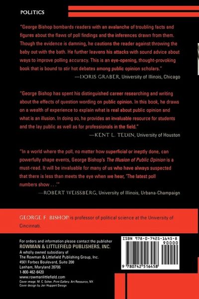 In a rigorous critique of public opinion polling in the U.S., George F. Bishop makes the case that a lot of what passes as "public opinion" in mass media today is an illusion, an artifact of measurement created by vague or misleading survey questions presented to respondents who typically construct their opinions on the spot. Using evidence from a wide variety of data sources, Bishop shows that widespread public ignorance and poorly informed opinions are the norm rather than definitive public opinion on key political, social, and cultural issues of the day. The Illusion of Public Opinion presents a number of cautionary tales about how American public opinion has supposedly changed since 9/11, amplified by additional examples on other occasions drawn from the American National Election Studies. Bishop's analysis of the pitfalls of asking survey questions and interpreting poll results leads the reader to a more skeptical appreciation of the art and science of public opinion polling as it is practiced today.