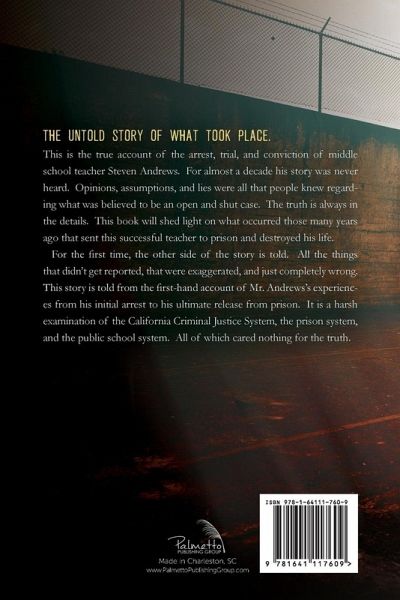 This is the true account of the arrest, trial, and conviction of middle school teacher Steven Andrews. For almost a decade his story was never heard. Opinions, assumptions, and lies were all that people knew regarding what was believed to be an open and shut case. The truth is always in the details. This book will shed light on what occurred those many years ago that sent this successful teacher to prison and destroyed his life. For the first time, the other side of the story is told. All the things that didn't get reported, that were exaggerated, and just completely wrong. This story is told from the first-hand account of Mr. Andrews's experiences from his initial arrest to his ultimate release from prison. It is a harsh examination of the California Criminal Justice System, the prison system, and the public school system. All of which cared nothing for the truth.