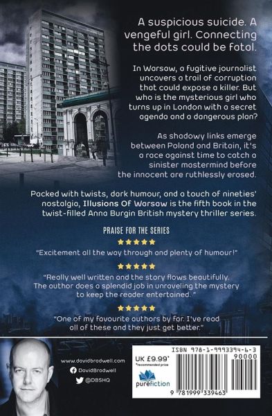 A suspicious suicide. A vengeful girl. Connecting the dots could send a group of friends to the morgue..... Warsaw, 1997. Fugitive journalist Clare Woodbrook refuses to ignore a colleague's questionable death. Teaming up with a fellow reporter, she uncovers a trail of corruption that could expose the killer. But when they get too close to the truth, they're framed for a series of bloody crimes. London. Secretive, bright-eyed Louise arrives on Anna Burgin's doorstep, claiming to be Clare's long-lost niece. But her true agenda is simple and deadly: revenge for her father's murder. And her ill-conceived plan to infiltrate a crew of con artists puts both Anna and her in a vicious gangster's crosshairs. As Clare discovers shadowy links between Poland and Britain, she races against time to clear her name and reveal the culprit before more body bags fill. But with Louise and Anna caught up in the mess in England, it might be too late to save everyone... Can the unlikely team catch a sinister mastermind before they're ruthlessly erased? Illusions of Warsaw is the fifth book in the twisty Anna Burgin mystery-thriller series.
