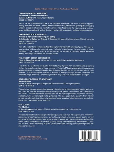1. The Professional Appraiser.- Primary Function of the Appraiser.- Primary Objective of the Appraiser.- Value Definitions and Their Applications to Jewelry Appraisals.- Purpose and Function of an Appraisal.- 2. Appraisal Concepts and Principles.- Valuation Approaches.- Finding Information.- Using Price Guides.- Judging Quality.- Recording Condition.- 3. Making Correct Identification.- Using Symbols, Motifs, and Ornamental Styles as Identification Guides in Estate and Period Jewelry.- Motifs and Designs Used in Various Cultures.- Decorative Motifs.- Using Color as a Clue to Jewelry Dating.- Cut of Stones.- Supplemental Identification Information for Antique Jewelry.- 4. Estimating Values.- Finger Rings.- Earrings.- Necklaces.- Pendants.- Chains.- Bracelets.- The Brooch.- Beads.- Pearls.- Charms, Seals, and Trinkets.- Cufflinks, Studs, and Stickpins.- Reverse Crystal Intaglios.- Pocket Watches and Wristwatches.- 5. The Appraisal Document.- Information to Be Included in a Jewelry Appraisal.- Appraisal Document Critique.- Using Limiting and Contingent Conditions.- Fair Market Value Document.- Jewelry Appraisal (Sample).- Appendices.- Diameters and Corresponding Weights of Round, Well-Proportioned, Brilliant-Cut Diamonds.- Proper Nomenclature of the Specific Parts of a Brilliant-Cut Diamond.- New Diamond Cuts.- Formulas for Unusual Diamond Cuts.- Precious Metal Prices.- Average Trade Prices (per Carat).- Table of Comparative Ring-Size Equivalents.- Guide to Gemstone Handling.- Colored Stone Grading Report.- Cubic Zirconia Stone Conversion Chart.- Birthstones through the Ages.- Manufacturers and Wholesalers of Antique Reproduction Jewelry.- Auction Galleries That Hold Jewelry Sales.- Pearl Facts.- Appraisal Terms.- Author Catalog Terms.- Enamel Terms.- Pearl Terms.