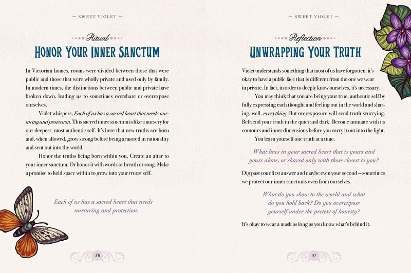 Preface Introduction The Herbiary Chickweed: Start Fresh Daisy: Be Yourself Red Clover: Center and Ground Sweet Violet: Inner Sanctum Apple: Forbidden Fruit White Sage: Clear the Way Self-Heal: Ripple Outward Thyme: Distill Your Self Dandelion: Perseverance Burdock: Tap Your Resources Rose: Crack Open Raspberry: Create Space Hawthorn: Heart’s Home Plantain: Rewild Valerian: Release Rigidity California Poppy: Resurrection Mugwort: Between Dreams Elderberry: Cyclicality Lady’s Mantle: Fortitude Starflower: Finding Grace Lavender: Tough Love Comfrey: What Needs Mending? Marshmallow: A Spoonful of Sugar Yarrow: Pocket of Protection Oats: Just Be St. John’s Wort: Light in the Darkness Trillium: Spirit into Matter White Willow: The Ways of Water Quaking Aspen: We Are One Mullein: Integration Reishi: Defying Gravity Passionflower: Exuberant Quietude Nettle: Pay Attention! Tulsi: You Are Sacred Vervain: Let Magic In Rosemary: Remembrance How to Work with the Herbiary Cards Thank-Yous