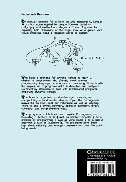 By popular demand Donald Alcock has applied his unique formula of graphics and calligraphy to illustrate ANSI C. A feature of the layout is the double-page spread: each of these covers a particular topic making the book useful as a reference manual. Each spread is made as self-contained as is reasonable - ideal for browsing. This revised edition has benefited from many corrections and updates, and has now been printed in a wide-page format for ease of use.