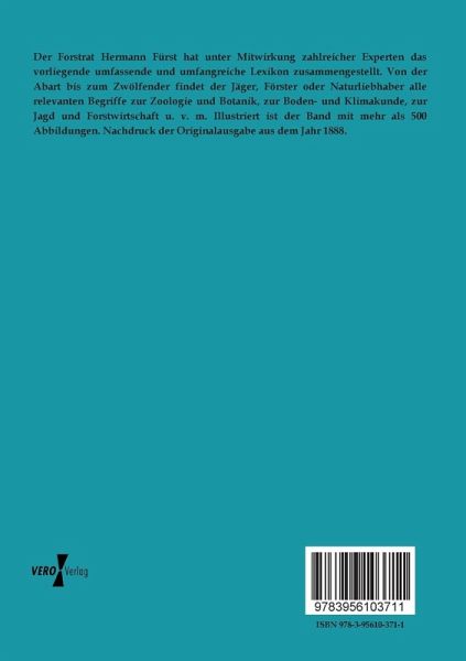 Der Forstrat Hermann Fürst hat unter Mitwirkung zahlreicher Experten das vorliegende umfassende und umfangreiche Lexikon zusammengestellt. Von der Abart bis zum Zwölfender findet der Jäger, Förster oder Naturliebhaber alle relevanten Begriffe zur Zoologie und Botanik, zur Boden- und Klimakunde, zur Jagd und Forstwirtschaft u. v. m. Illustriert ist der Band mit mehr als 500 Abbildungen. Nachdruck der Originalausgabe aus dem Jahr 1888.