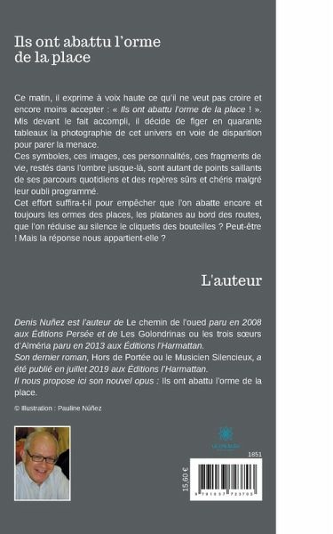 Ce matin, il exprime à voix haute ce qu'il ne veut pas croire et encore moins accepter : « Ils ont abattu l'orme de la place ! ». Mis devant le fait accompli, il décide de figer en quarante tableaux la photographie de cet univers en voie de disparition pour parer la menace. Ces symboles, ces images, ces personnalités, ces fragments de vie, restés dans l'ombre jusque-là, sont autant de points saillants de ses parcours quotidiens et des repères sûrs et chéris malgré leur oubli programmé. Cet effort suffira-t-il pour empêcher que l'on abatte encore et toujours les ormes des places, les platanes au bord des routes, que l'on réduise au silence le cliquetis des bouteilles ? Peut-être ! Mais la réponse nous appartient-elle ?