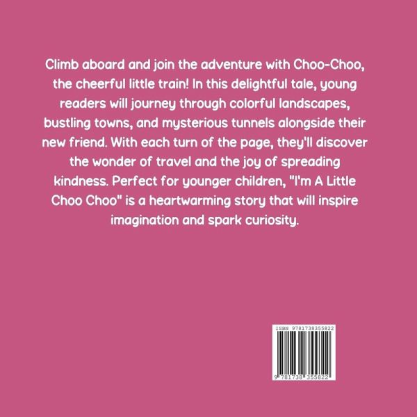 Embark on a delightful journey with "I'm A Little Choo Choo," a heartwarming children's book perfect for ages 3-7. Join Choo-Choo, the cheerful little train, as he travels through colorful landscapes, bustling towns, and mysterious tunnels, spreading joy and kindness along the way. With its engaging storyline and charming illustrations, this 29-page adventure is sure to captivate young readers and inspire their imaginations. Printed on high-quality paper, and featuring a high gloss soft front cover, this 8.5x8.5-inch book is not only a wonderful addition to any child's library but also makes a perfect gift for birthdays, holidays, or any special occasion. Whether read aloud at bedtime or enjoyed independently, "I'm A Little Choo Choo" promises to enchant both children and adults alike with its timeless message of friendship and exploration.