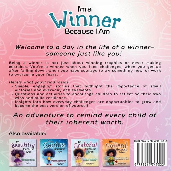 "I'm A Winner Because I Am" - A Journey of Resilience and Self-Belief An empowering children's book about winning that nurtures perseverance, self-confidence, and positive attitude. This social emotional learning picture book helps children discover that being a winner is about more than just trophies and medals! This inspiring illustrated children's story teaches children that winning comes from within. It fosters resilience and shows young minds how to find victory in everyday challenges. As one of the standout kids books about self-esteem, it includes prompts for self-reflection and…mehr
