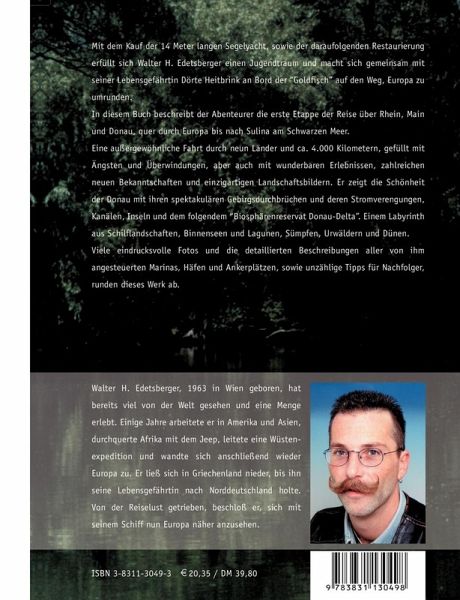 Mit dem Kauf der 14 Meter langen Segelyacht, sowie der darauffolgenden Restaurierung erfüllt sich Walter H. Edetsberger einen Jugendtraum und macht sich gemeinsam mit seiner Lebensgefährtin Dörte Heitbrink an Bord der "Goldfisch" auf den Weg, Europa zu umrunden. In diesem Buch beschreibt der Abenteurer die erste Etappe der Reise über Rhein, Main und Donau, quer durch Europa bis nach Sulina am Schwarzen Meer. Eine außergewöhnliche Fahrt durch neun Länder und ca. 4000 km, gefüllt mit Ängsten und Überwindungen, aber auch mit wunderbaren Erlebnissen, zahlreichen neuen Bekanntschaften und einzigartigen Landschaftsbildern. Er zeigt die Schönheit der Donau mit ihren spektakulären Gebirgsdurchbrüchen und deren Stromverengungen, Kanälen, Inseln und dem folgendem "Biosphärenreservat Donau-Delta". Einem Labyrinth aus Schiflandschaften, Binnenseen und Lagunen, Sümpfen, Urwäldern und Dünen. Viele eindrucksvolle Fotos und die detaillierten Beschreibungen aller von ihm angesteuerten Marinas, Häfen und Ankerplätzen, sowie unzählige Tipps für Nachfolger, runden dieses Werk ab und lassen es zu einem unverzichtbaren Reisebegleiter auf der Donau werden.