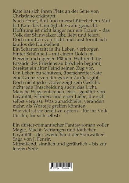 Im düsteren Schatten der Skinwalker beginnt Kates wahre Bestimmung.Einst geopfert, heute Königin - in "Im Bann der Skinwalker 2 - Schwur des Blutes" kämpft sie an der Seite ihres Gefährten Christiano um Freiheit, Liebe und den Fortbestand ihres Volkes.Zwischen uralten Flüchen, gefährlichen Feinden und Ritualen entdeckt sie ihre wahre Stärke - zudem wird sich der dunklen Magie eines Blutschwurs gestellt, der alles kosten könnte. Ein mitreißender Mix aus Dark Fantasy, erotischer Leidenschaft und dem unerschütterlichen Willen, ein neues Leben zu schaffen.