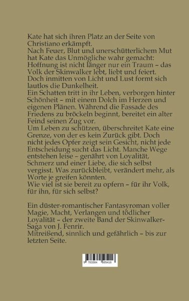 Im düsteren Schatten der Skinwalker beginnt Kates wahre Bestimmung.Einst geopfert, heute Königin - in "Im Bann der Skinwalker 2 - Schwur des Blutes" kämpft sie an der Seite ihres Gefährten Christiano um Freiheit, Liebe und den Fortbestand ihres Volkes.Zwischen uralten Flüchen, gefährlichen Feinden und Ritualen entdeckt sie ihre wahre Stärke - zudem wird sich der dunklen Magie eines Blutschwurs gestellt, der alles kosten könnte. Ein mitreißender Mix aus Dark Fantasy, erotischer Leidenschaft und dem unerschütterlichen Willen, ein neues Leben zu schaffen.