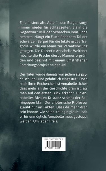 Eine finstere alte Abtei in den Bergen sorgt immer wieder für Schlagzeilen. Bis in die Gegenwart will der Schrecken kein Ende nehmen. Hängt ein Fluch über dem Tal der schwarzen Berge? Für die letzte große Tragödie wurde ein Mann zur Verantwortung gezogen. Die Dozentin Annabelle Weithner möchte die Psyche dieses Mannes ergründen und beginnt mit einem umstrittenen Forschungsprojekt an der Uni.Der Täter wurde damals von jedem als psychisch labil und gefährlich eingestuft. Doch nach ihren Recherchen ist Annabelle sicher, dass mehr an der Geschichte dran ist, als man auf den ersten Blick erkennt. Für Annabelles Rivalen Kristanz scheint der Fall hingegen klar. Der cholerische Professor glaubt nur an Fakten. Dass da mehr dran sein könnte, wie seine Kollegin glaubt, hält er für unmöglich. Annabelle muss gestoppt werden. Um jeden Preis.