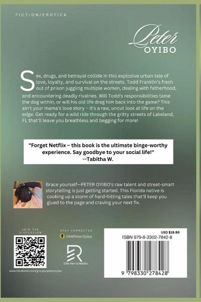 Sex, drugs, and betrayal collide in this explosive urban tale of love, loyalty, and survival on the streets. Todd Franklin's fresh out of prison juggling multiple women, dealing with fatherhood, and encountering deadly rivalries. Will Todd's responsibilities tame the dog within, or will his old life drag him back into the game? This ain't your mama's love story - it's a raw, uncut look at life on the edge. Get ready for a wild ride through the gritty streets of Lakeland, FL that'll leave you breathless and begging for more! Brace yourself-PETER OYIBO's raw talent and street-smart storytelling is just getting started. This Florida native is cooking up a storm of hard-hitting tales that'll keep you glued to the page and craving your next fix.
