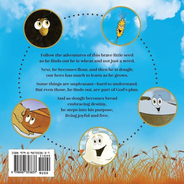 This delightfully illustrated children's book is a parable of purpose. Follow our little wheat stalk from life in the field all the way to becoming bread and every adventure in between. Your child will see how to endure hard things and learn to trust God's plan for their life. Full-color illustrations and rhyming lines bring this character to life. Follow the adventures of this brave little seed as he finds out he is wheat and not just a weed. Next, he becomes flour, and then he is dough; our hero has much to learn as he grows. Some things are unpleasant and hard to understand. But even those, he finds out, are part of God's plan. And as dough becomes bread embracing destiny, he steps into his purpose, living joyful and free.