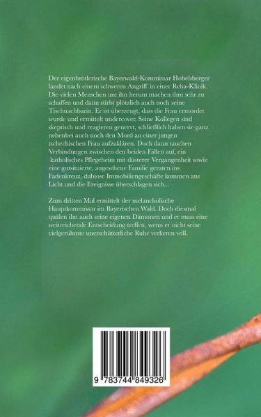 Der eigenbrötlerische Bayerwald-Kommissar Hobelsberger landet nach einem schweren Angriff in einer Reha-Klinik. Die vielen Menschen um ihn herum machen ihm sehr zu schaffen und dann stirbt plötzlich auch noch seine Tischnachbarin. Er ist überzeugt, dass die Frau ermordet wurde und ermittelt undercover. Seine Kollegen sind skeptisch und reagieren genervt, schließlich haben sie ganz nebenbei auch noch den Mord an einer jungen tschechischen Frau aufzuklären. Doch dann tauchen Verbindungen zwischen den beiden Fällen auf, ein katholisches Pflegeheim mit düsterer Vergangenheit sowie eine gutsituierte, angesehene Familie geraten ins Fadenkreuz, dubiose Immobiliengeschäfte kommen ans Licht und die Ereignisse überschlagen sich...Zum dritten Mal ermittelt der melancholische Hauptkommissar im Bayerischen Wald. Doch diesmal quälen ihn auch seine eigenen Dämonen und er muss eine weitreichende Entscheidung treffen, wenn er nicht seine vielgerühmte unerschütterliche Ruhe verlieren will.