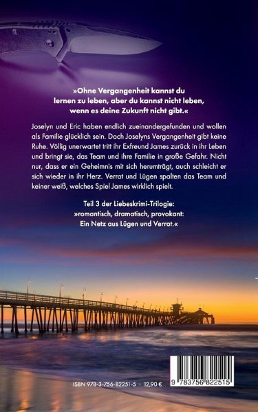 »Ohne Vergangenheit kannst du lernen zu leben, aber du kannst nicht leben, wenn es deine Zukunft nicht gibt.« ___ Joselyn und Eric haben endlich zueinandergefunden und wollen als Familie glücklich sein. Doch Joselyns Vergangenheit gibt keine Ruhe. Völlig unerwartet tritt ihr Exfreund James zurück in ihr Leben und bringt sie, das Team und ihre Familie in große Gefahr. Nicht nur, dass er ein Geheimnis mit sich herumträgt, auch schleicht er sich wieder in ihr Herz. Verrat und Lügen spalten das Team und keiner weiß, welches Spiel James wirklich spielt. ___ Teil 3 der Liebeskrimi-Trilogie: »romantisch, dramatisch, provokant: Ein Netz aus Lügen und Verrat.« ___ Dieses Buch ist der dritte und letzte Teil der Liebeskrimi-Trilogie rund um Joselyn, Eric und das Ermittlerteam in San Diego. Er knüpft an den Epilog von »Im Fokus der Liebe« an und verspricht wieder eine atemberaubende Mischung aus Krimi und Liebesgeschichte. ___ »Romanze und Krimi treffen hier knallhart aufeinander und werden dem Leser den Atem rauben.« ___ Auch Teil 3 wird Fans des besonderen Liebeskrimi-Genres begeistern. Den atemberaubenden Showdown um Joselyn und Eric sollte man sich auf keinen Fall entgehen lassen.