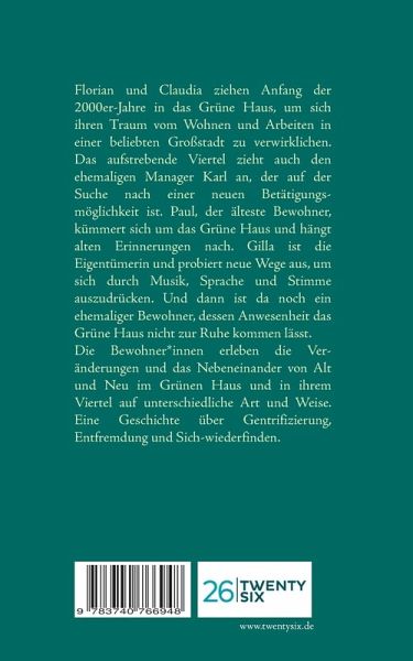 Florian und Claudia ziehen Anfang der 2000er-Jahre in das Grüne Haus, um sich ihren Traum vom Wohnen und Arbeiten in einer beliebten Großstadt zu verwirklichen. Das aufstrebende Viertel zieht auch den ehemaligen Manager Karl an, der auf der Suche nach einer neuen Betätigungsmöglichkeit ist. Paul, der älteste Bewohner, kümmert sich um das Grüne Haus und hängt alten Erinnerungen nach. Gilla ist die Eigentümerin und probiert neue Wege aus, um sich durch Musik, Sprache und Stimme auszudrücken. Und dann ist da noch ein ehemaliger Bewohner, dessen Anwesenheit das Grüne Haus nicht zur Ruhe kommen lässt. Die Bewohner_innen erleben die Veränderungen und das Nebeneinander von Alt und Neu im Grünen Haus und in ihrem Viertel auf unterschiedliche Art und Weise. Eine Geschichte über Gentrifizierung, Entfremdung und Sich-wiederfinden.
