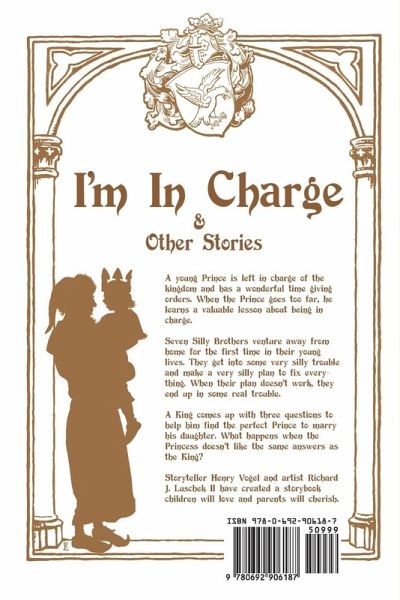 A young Prince is left in charge of the kingdom and has a wonderful time giving orders. When the Prince goes too far, he learns a valuable lesson about being in charge. Seven Silly Brothers venture away from home for the first time in their young lives. They get into some very silly trouble and make a very silly plan to fix everything. When their plan doesn't work, they end up in some real trouble. A King comes up with three questions to help him find the perfect Prince to marry his daughter. What happens when the Princess doesn't like the same answers as the King? Storyteller Henry Vogel and artist Richard J. Luschek, II have crafted a storybook children will love and parents will cherish.