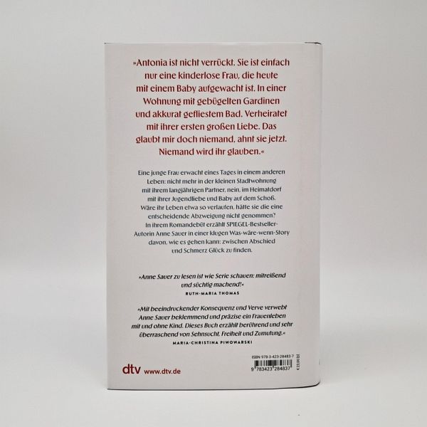Eines Morgens erwacht Toni nicht wie gewohnt neben ihrem langjährigen Freund in ihrer kleinen Altbauwohnung, weil die Dielen knarren und die Nachbarn viel zu laut sind. Nein. Zu ihrer Verwunderung befindet sie sich in einer großzügig geschnittenen Wohnung. Alles hell, ordentlich, teuer eingerichtet. Und der Blick aus dem Fenster? Seltsam vertraut. Antonia versteht: Sie ist wieder in dem Dorf ihrer Kindheit. Nach und nach erfährt sie, dass sie hier ein beschauliches Leben führt, bürgerlich geordnet, mit Auto vor der Tür, Schwiegermutter nebenan und Kind auf dem Schoß. Kind auf dem Schoß? Antonia kommt aus dem Staunen nicht mehr heraus. Ist das etwa ihr Baby? Und der Vater dazu? Offenbar ihre erste große Liebe - ein Mann, den sie nie ganz vergessen konnte.