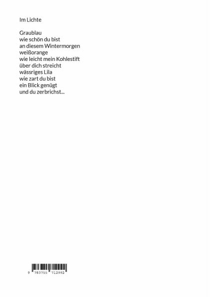 Im LichteGraublauwie schön du bistan diesem Wintermorgenweißorangewie leicht mein Kohlestiftüber dich streichtwässriges Lilawie zart du bistein Blick genügtund du zerbrichst...