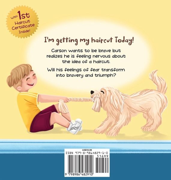 Is your child feeling anxious over the idea of getting their hair cut? This beautifully illustrated keepsake book, I'm Not Scared, No Way helps calm a child's fear by preparing them for the new experience and walking them through the process. You will find a keepsake certified for their first haircut at the end of the book along with a place for a photo and a lock of the child's hair. What a great gift for an adult child with the lock of their hair and memorialized date of their first hair cut. Grab your copy today - a great gift for a new mom, friend or family member with a toddler.