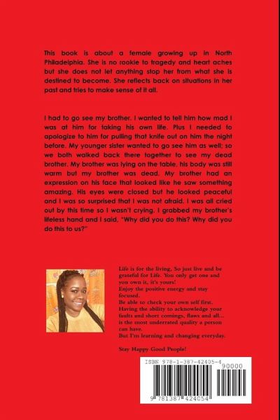 This book is about a young female growing up in the badlands of North Philadelphia. She is not a rookie to tragedy and pain but she doesn't let anything stop her from becoming what she is destined to be. She reflects back on situations in her past and tries to make sense of this thing called life.