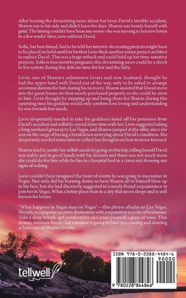 After hearing the devastating news about her lover David's terrible accident, Sharon ran to his side and didn't leave for days. Sharon was beside herself with grief. The timing couldn't have been any worse: she was moving to her new home in a few weeks' time, now without David. Sofia, her best friend, had to be told her interior decorating projects might have to be placed on hold until her brother Livio finds another senior project architect to replace David. This was a huge setback and could hold up her time sensitive projects. Sofia is four months pregnant; this devastating news could be a shock to her system during this delicate time for her and the baby. Livio, one of Sharon's submissive lovers and now husband, thought he had the upper hand with David out of the way, only to be asked to arrange accommodations for him during his recovery. Sharon insisted that David move into the guest house on their newly purchased property so she could be close to him. Livio thought by stepping up and being there for Sharon during this upsetting time his goddess would only confirm how loving and understanding he was towards her needs. Livio desperately needed to take his goddess's mind off her pressures from David's accident and selfishly craved alone time with her. Livio suggested taking a long weekend getaway to Las Vegas, and Sharon jumped at the offer, since she was on the verge of having a breakdown worrying about David's condition. She desperately needed some time to collect her thoughts on how to move forward. Sharon tried to justify her selfish needs by going on this trip, telling herself David was stable and in good hands with his doctors and there was not much more she could do for him while he lies in a hospital bed in a coma not showing any signs of waking. Livio couldn't have imagined the twist of events he was going to encounter in Vegas. Not only did his burning desire to have Sharon all to himself blow up in his face, but she had discreetly suggested to a newly found acquaintance to join her in Vegas. What a better place than in a city that never sleeps and is well known for lovers. "What happens in Vegas stays in Vegas"-this phrase alludes to Las Vegas, Nevada, as a popular vacation destination with a reputation as a city of hedonism. Take a deep breath, get comfortable and pour yourself a glass of wine. This steamy, intimate female-led romance is going to have you craving and desiring at least one of Sharon's lovers.