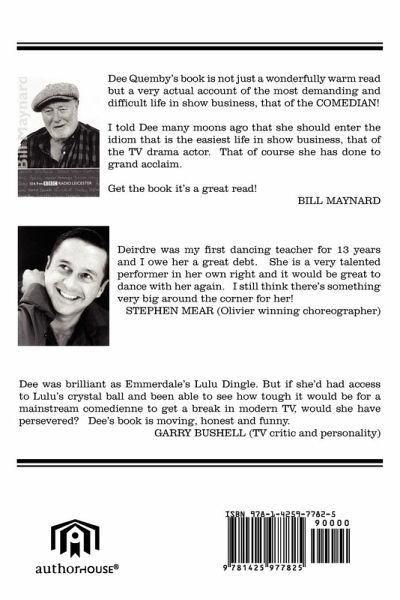 Dee Quemby's book is not just a wonderfully warm read but a very actual account of the most demanding and difficult life in show business, that of the COMEDIAN! I told Dee many moons ago that she should enter the idiom that is the easiest life in showbusiness, that of the TV drama actor. That of course she has done to grand acclaim. Get the book it's a great read! BILL maynard Deirdre was my first dancing teacher for 13 years and I owe her a great debt. She is a very talented performer in her own right and it would be great to dance with her again. I still think there's something very big around the corner for her! Stephen Mear (Olivier winning choreographer of Mary Poppins) Dee was brilliant as Emmerdale's Lulu Dingle. But if she'd had access to Lulu's crystal ball and been able to see how tough it would be for a mainstream comedienne to get a break in modern TV, would she have persevered? Dee's book is moving, honest and funny. Garry Bushell (tv critic)