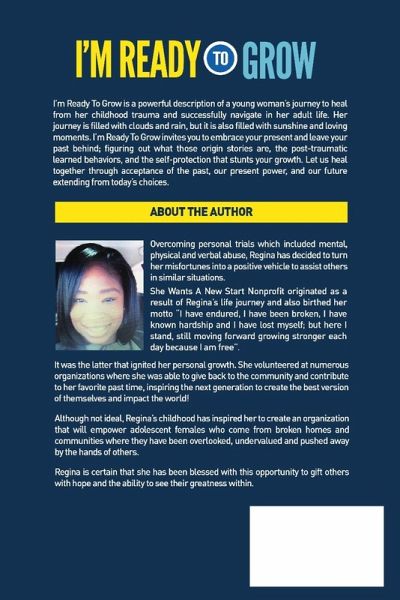I'm Ready to Grow is a powerful description of a young woman's journey to heal from her childhood trauma and successfully navigate in her adult life. Her journey is filled with clouds and rain, but it is also filled with sunshine and loving moments.