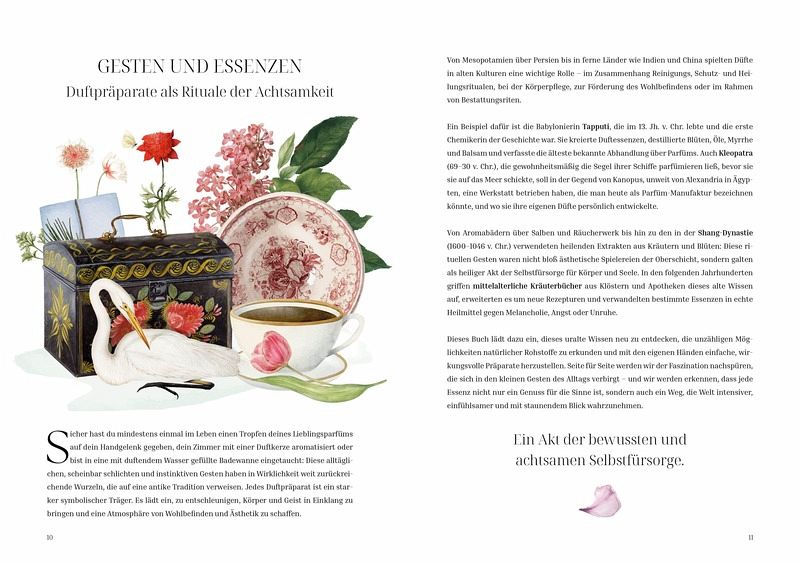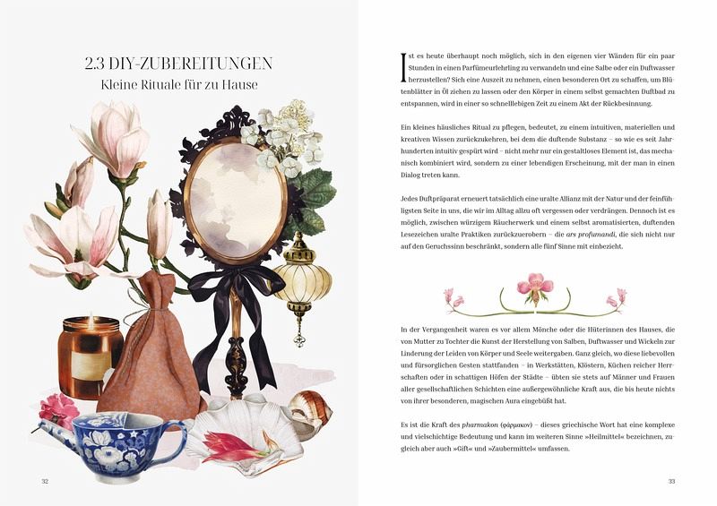 Parfüm ist mehr als nur ein Duft - eine Brücke zwischen Kunst, Wissenschaft, Geschichte und Emotionen. Dieses Buch erkundet die mystische und alchemistische Quintessenz der Parfümherstellung durch den olfaktorischen Code - eine Landkarte der Düfte, mit der wir in das Handwerk der Duftkreation eintauchen. Das Buch enthüllt die heilige Kunst der Ars Botanica - das Auswählen und Mischen von Kräutern, Blüten, Harzen und Gewürzen. Vom mystischen Hexengarten bis zum tiefen Unterholz, von feurig-rauchigen Noten bis zu kontrastierenden, doch harmonisierenden Aromen der solaren und lunaren Düfte - jedes Reich enthüllt die alchemistische Verwandlung von Rohstoffen in komplexe, wirkungsvolle Duftnoten und gibt praktische Rezepte zum Selbermachen - eine Einladung zur Gestaltung unserer eigenen olfaktorischen Reise.