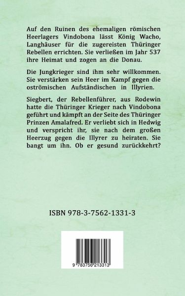 Auf den Ruinen des ehemaligen römischen Heerlagers Vindobona lässt König Wacho, Langhäuser für die zugereisten Thüringer Rebellen errichten. Sie verließen im Jahr 537 ihre Heimat und zogen an die Donau.Die Jungkrieger sind ihm sehr willkommen. Sie verstärken sein Heer im Kampf gegen die oströmischen Aufständischen in Illyrien.Siegbert, der Rebellenführer aus Rodewin, hatte die Thüringer Krieger nach Vindobona geführt und kämpft an der Seite des Thüringer Prinzen Amalafred. Er verliebt sich in Hedwig und verspricht ihr, sie nach dem großen Heerzug gegen die Illyrer zu heiraten. Sie bangt um ihn. Ob er gesund zurückkehrt?