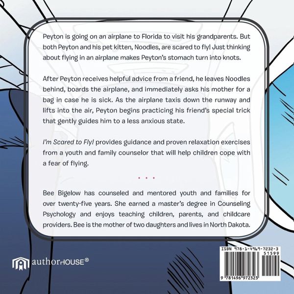Peyton is going on an airplane to Florida to visit his grandparents. But both Peyton and his pet kitten, Noodles, are scared to fly! Just thinking about flying in an airplane makes Peyton¿s stomach turn into knots. After Peyton receives helpful advice from a friend, he leaves Noodles behind, boards the airplane, and immediately asks his mother for a bag in case he is sick. As the airplane taxis down the runway and lifts into the air, Peyton begins practicing his friend¿s special trick that gently guides him to a less anxious state. I¿m Scared to Fly! provides guidance and proven relaxation exercises from a youth and family counselor that will help children cope with a fear of flying.
