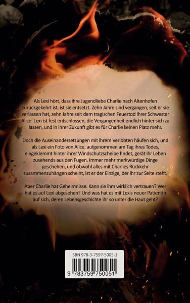 Zehn Jahre sind vergangen seit er sie verlassen hat. Zehn Jahre seit dem tragischen Feuertod ihrer Schwester. Doch jetzt ist er zurück. Und das Unglück nimmt seinen Lauf ... Als Lexi hört, dass ihre Jugendliebe Charlie nach Altenhofen zurückgekehrt ist, ist sie entsetzt. Zehn Jahre sind vergangen, seit er sie verlassen hat, zehn Jahre seit dem tragischen Feuertod ihrer Schwester Alice. Lexi ist fest entschlossen, die Vergangenheit endlich hinter sich zu lassen, und in ihrer Zukunft gibt es für Charlie keinen Platz mehr. Doch die Auseinandersetzungen mit ihrem Verlobten häufen sich, und als Lexi ein Foto von Alice, aufgenommen am Tag ihres Todes, eingeklemmt hinter ihrer Windschutzscheibe findet, gerät ihr Leben zusehends aus den Fugen. Immer mehr merkwürdige Dinge geschehen, und obwohl alles mit Charlies Rückkehr zusammenzuhängen scheint, ist er der Einzige, der ihr zur Seite steht. Aber Charlie hat Geheimnisse. Kann sie ihm wirklich vertrauen? Wer hat es auf Lexi abgesehen? Und was hat es mit Lexis neuer Patientin auf sich, deren Lebensgeschichte ihr so unter die Haut geht?