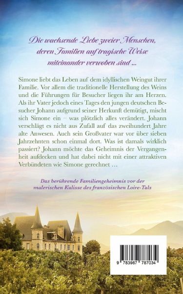 Die wachsende Liebe zweier Menschen, deren Familien auf tragische Weise miteinander verwoben sind … Das berührende Familiengeheimnis vor der malerischen Kulisse des französischen Loire-Tals Simone liebt das Leben auf dem idyllischen Weingut ihrer Familie. Vor allem die traditionelle Herstellung des Weins und die Führungen für Besucher liegen ihr am Herzen. Als ihr Vater jedoch eines Tages den jungen deutschen Besucher Johann aufgrund seiner Herkunft demütigt, mischt sich Simone ein – was plötzlich alles verändert. Johann verschlägt es nicht aus Zufall auf das zweihundert Jahre alte Anwesen. Auch sein Großvater war vor über sieben Jahrzehnten schon einmal dort. Was ist damals wirklich passiert? Johann möchte das Geheimnis der Vergangenheit aufdecken und hat dabei nicht mit einer attraktiven Verbündeten wie Simone gerechnet … Dies ist eine überarbeitete Neuauflage des bereits erschienenen Titels Das Geheimnis von Chateau Limeray. Erste Leser:innenstimmen „Mitreißendes Familiengeheimnis in der wunderschönen, bildhaft beschriebenen Kulisse Frankreichs!" „Die historischen Hintergründe sind absolut beeindruckend recherchiert und geschildert." „Spannung, Drama, Geheimnisse, Liebe … hier stimmt alles!" „Vergangenheit und Gegenwart sind toll miteinander verwoben, ich konnte nicht aufhören zu lesen."