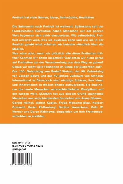 Referate: Auma Obama, Im Kopf bin ich frei! Walter Kugler, Im Sinne der Freiheit : Wittgenstein, Steiner und Beuys. Doron Rabinovici, Hundertundsiebzehn - Oder eine kurze Anleitung zum jüdischen Witz. Oliver Mack, GOFI - Die Global Online Freedom Initiative. Marc Lesser, Leadership, Imagination, Zen. Gerald Häfner, Freie Märkte - Freie Menschen? Freiheit, Gleichheit, Brüderlichkeit und die politischen Aufgaben unserer Zeit. Freda Meissner-Blau, Freiheit wovon - Freiheit wofür. Herbert Dreiseitl und Bettina Wanschura, Grenzen und Freiheiten urbaner Wasserwelten. Karim El-Gawhary, Das Jahr der Arabellion - ein persönlicher Korrespondenten-Rückblick. - Workshops & Roundtables: Freiheit zwischen Wut und Empörung, Hubert Gaisbauer. Dank IKT (wieder-)gewonnene Freiheit . Das Förderprogramm benefit des BMVIT, Kerstin Zimmermann, Michael Wiesmüller. Konsum - Los "Freiheit durch Nachhaltigkeit" Plastik - Fluch & Segen einer Wohlstandsgesellschaft, Andrea Ecker. Nachhaltigkeit braucht Kunst , Hannah Rieger und Claudia Röschl. Die Freiheit und die Wirtschaft oder die Freiheit in der Wirtschaft, Philipp Belcredi. - Philosophicum: Götz Werner im Gespräch mit Michael Kerbler, Macht ein bedingungsloses Grundeinkommen die Menschen frei? - Ausstellungen: Internationale Kunst aus der Sammlung Infeld, Art Brut Forum GLOBArt. Lichtinstallation "...frei erfunden...", Julia Starsky. - Referenten.