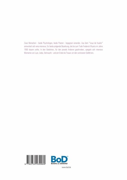 Zwei Menschen - beide Psychologen, beide Poeten - begegnen einander. Aus dem "coup de foudre" entwickelt sich eine intensive, für beide prägende Beziehung, die bis zum Tode Frederick Wyatts im Jahre 1993 dauern sollte. In den Gedichten, für den jeweils Anderen geschrieben, spiegeln sich intensive Momente von Lust, Liebe, Sehnsucht - und am Ende die Trauer um den verlorenen Gefährten.