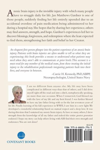 An eloquent first-person glimpse into the patient experience of an anoxic brain injury. Patients with brain injuries are often unable to tell us what they are experiencing; this book provides a means to understand what patients may need when they aren't able to communicate at prior levels. This account is a must-read for any member of the medical team, from those treating the initial injury to the rehabilitation professionals integrating patients back into their lives, and everyone in between. Carrie H. Kennedy, PhD, ABPP, Neuropsychologist, United States Navy
