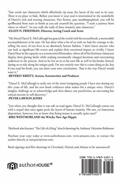 Years ago?Darryl E. McCullough published his first book ?Perfectly Sane: An Arsenal of Verbal Expression? consisting of short-stories and poetry. While still professing his sanity, this writer, director, producer and now award winning screenplay writer is releasing his second book ?I?m Still Sane! But Crazier than Ever: A Collection of Short Stories, Angry Poems and Bitter Essays? This book picks up where the other one left off! It showcases the life, times and crimes of this author?s imagination, perception and his astounding revelations of growing up, race-relations, dating and marriage. Featuring such racial exploratory favorites as ?The Furgerson Nose,? ?A Raisin in a Bowl Full of White Rice? and ?Interracial Dating: Who Cares Anymore?" Joined with the dating and marital expressions of ?Ladies!The Truth about your Male Friends,??And Then?She Hit Me? and ?Look at my Beautiful Wife?After the Divorce.?Also moralistic adult excavating such as ?Sweets? and the eyebrow raising ?Zebra/Playing Ain?t for Everybody.? This book also features many articles from the author?s yearlong column ?One Man?s Point of View.? An added treat is a humorous interview with Black men and women discussing the problems that they have with each other. This book also features ?The Life of a King? sketch drawings by Anthony Valentino Robinson Purchase your copy today at www.authorhouse.com, www.amazon.com, or contact the author directly at sanepoet@msn.com . Book signings and film showings in Cleveland, Detroit and Atlanta to be announced!