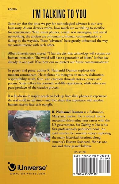 Some say that the price we pay for technological advance is our very humanity. As our devices evolve, how much are we willing to sacrifice for convenience? With smart phones, e-mail, text messaging, and social networking, the ancient art of human-to-human communication is falling by the wayside. These "advances" have greatly influenced the way we communicate with each other. Albert Einstein once mused, "I fear the day that technology will surpass our human interaction. The world will have a generation of idiots." Is that day already in our past? If so, how can we protect our future communications? In poetry and prose, author R. Nathaniel Dunton explores this modern conundrum. He explores his thoughts on nature, dedication, responsibility, truth, faith, and emotion through stories, essays, and poems. Some reflect his personal, real-life experiences, while others are pure products of the creative process. It is his dream to inspire people to look up from their phones to experience the real world in real time-and then share that experience with another human, face-to-face, as is our gift.