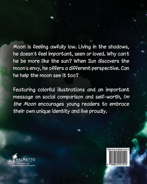 When the moon wishes to be more like the sun, it will be up to the sun to help change his point of view. Feelings of inadequacy are far too common for so many uniquely extraordinary people. Yet the truth is we are all important and worthy of love. But to recognize this universal truth, we need to feel seen. In I'm The Moon, author Melissa Gillman uses the magic of poetry to inspire young children to look deep within themselves, appreciate their value, and be proud of the gifts that they alone hold. In this beautifully illustrated and thoughtful tale, the Moon is feeling unseen, unimportant and envious. Rather than recognizing his own talents, Moon admires Sun for being all he could never be. But Sun recognizes just how important Moon is. As he guides the moon to recognize his own special gifts through a poetic, heartwarming journey of encouragement, acceptance and self-love, Moon will come to realize his own vital importance and take pride in who he is while gaining confidence and a change of perspective along the way. Designed to be an inspirational, uplifting narrative depicting the familiar scenario of social comparison, the book reminds little ones that perceptions can often be misleading and by longing to be someone else, people forget who they truly are. A great bedtime read aloud for parents and children, I'm the Moon encourages little ones to shine by embracing their unique talents and sharing them with the world.
