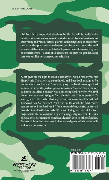 This book is the unpolished view into the life of one little family in the South. The words are an honest reminder as to why some animals eat their young and why all parents pray for sudden lightning or magic fairy dust to render spontaneous combustion possible at least once a day until all their children move away. It is also kept as a meticulous record by one Southern momma-a diary of all the reasons she prays her grandchildren turn out just like her own precious offspring.