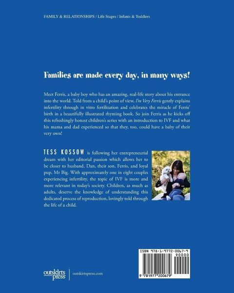 Families are made every day, in many ways! Meet Ferris, a baby boy who has an amazing, real-life story about his entrance into the world. Told from a child's point of view, I'm Very Ferris gently explains infertility through in vitro fertilization and celebrates the miracle of Ferris' birth in a beautifully illustrated rhyming book. So join Ferris as he kicks off this refreshingly honest children's series with an introduction to IVF and what his mama and dad experienced so that they, too, could have a baby of their very own!