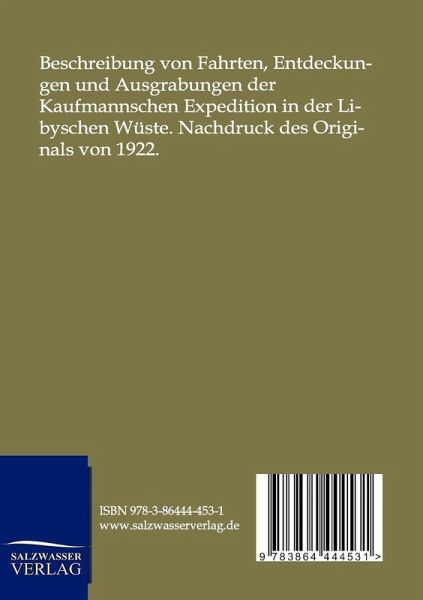 Beschreibung von Fahrten, Entdeckungen und Ausgrabungen der Kaufmannschen Expedition in der Libyschen Wüste. Nachdruck des Originals von 1922.