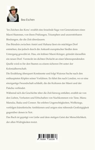 Im Zeichen des Koru erzählt eine epische Geschichte, die sich über mehrere Generationen erstreckt und das Erbe der Maori mit Themen wie Liebe, Verlust und der unerschütterlichen Kraft des menschlichen Geistes verbindet. Vor der beeindruckenden Kulisse von Aotearoa (Neuseeland) erzählt die Saga von den Prüfungen und Siegen eines Maori-Stammes, angefangen bei Amiri, einem mutigen Krieger, und Hahana, deren Vereinigung die Einheit ihrer Stämme symbolisiert. Doch ihr Vermächtnis wird durch die Invasion europäischer Siedler, die Amiris Dorf ins Chaos stürzen, in eine Tragödie verwandelt.Hau, Amiris bester Krieger, beschützt Manaia, die Tochter von Amiri und Hahana, und bringt sie zusammen mit ihrer Ziehmutter an einen Ort nahe einer Quelle, wo sie trotz aller Widrigkeiten einen Neuanfang wagen.Die Geschichte führt durch die Zeit und konzentriert sich auf Waiora, den Sohn von Manaia, dessen Wissensdurst eine Reise auslöst, um die abgetrennten heiligen Häupter seiner Vorfahren aus England zurückzuholen. London wird zum Schauplatz von Waioras Suche, bei der sein Schicksal mit dem von Koa, einer helfenden Hand, und Reginald, einem unerwarteten Verbündeten, verwoben ist. Gemeinsam überwinden sie kulturelle Barrieren, stellen die Ehre ihrer Vorfahren wieder her und schließen auf der Suche nach Versöhnung dauerhafte Freundschaften.Die Handlung verlagert sich dann zu Hinewai, eine von Waioras Töchtern, und Tane, deren Liebesgeschichte sich vor dem Hintergrund der Gräueltaten der Pakeha (europäische Siedler) während des Goldrausches entfaltet. Die Flucht der Familie nach London führt zur Gründung einer Kunsthandlung in der Proolmise Straße 55, die indigene Kunst aus Neuseeland fördert und eine neue Generation in einem fremden Land unterstützt.Das nächste Kapitel folgt Manu Manuka, dem einzigen Erben der wertvollen Kunsthandlung in London, dessen Leben eine turbulente Wendung nimmt, als er fälschlicherweise des Mordes beschuldigt wird. Während Manu mit seiner Inhaftierung zurechtkommen muss, entfaltet sich ein Netz aus Betrug und Rache, das von einem rachsüchtigen Schreiner gesponnen wird, der einen tiefen Groll gegen die Maori hegt.Die Familie wächst durch die Herausforderungen des Ersten Weltkriegs und wird Zeuge von Ihakas künstlerischem Ausdruck inmitten des Konflikts, Ruas tragischem Opfer und Pares hingebungsvoller Krankenpflege.Inmitten des Kriegslärms wird Ihakas Kunst zu einer Erzählung der Wahrheit, die das Glück der um Rachel und Elias erweiterten Familie beflügelt. Doch die Wirren des Zweiten Weltkriegs bewegen sie dazu, jüdische Kinder aus den Kindertransporten bei sich aufzunehmen, darunter auch Eva, als sie ihre Villa, die in eine Herberge umgewandelt wurde, der Armee überlassen müssen.Entschlossen, diese vertriebenen Seelen zu schützen, bringen Ihaka und seine Familie zweiunddreißig jüdische Kinder in das Dorf Hau nach Neuseeland, wo sie im Schutz des Busches und der Gastfreundschaft der Dorfgemeinschaft Heilung finden.Während die Familie wieder zusammenfindet und sich den Prüfungen des Lebens stellt, blüht die Liebe zwischen Eva und Elias, die in der bittersüßen Erkenntnis gipfelt, dass sie unfruchtbar ist und Elias an einer seltenen Krankheit frühzeitig stirbt. Jahrzehnte später freut sich Eva auf die Ankunft ihres Urenkels und schätzt ihre Verbindung zum Dorf Hau und dessen Erbe der Hoffnung und des Widerstands.Während der neue Stammbaum der Familie wächst, decken Connor und Veronica, die jüngste Generation, eine globale Verschwörung auf und enthüllen den beständigen Geist von Gerechtigkeit und Integrität, der in der Vorfreude auf ein neues Leben inmitten des Echos der Geschichte gipfelt.