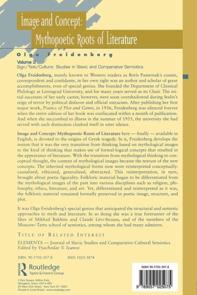 "Image and Concept" is Freidenberg's study of the origins of Greek tragedy. Freidenberg's work develops the notion that with the transition from mythological thinking to formal-logical concepts came the appearance of literature.