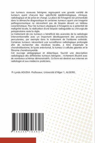Les tumeurs osseuses bénignes regroupent une grande variété de tumeurs ayant chacune leur spécificité épidémiologique, clinique, radiologique et de prise en charge. La place de l'imagerie est primordiale dans la démarche diagnostique et certaines tumeurs ayant une imagerie pathognomonique ne nécessitent pas de biopsie devant un tableau caractéristique. Pour les tumeurs atypiques à l'imagerie ou à potentiel de malignité locale, la réalisation d'une biopsie radioguidée ou chirurgicale préopératoire reste la règle. Le traitement de ces tumeurs a bénéficié des avancées de la radiologie interventionnelle avec un important développement des procédures percutanées, par exemple dans le traitement de l'ostéome ostéoïde. Certaines tumeurs nécessitent une surveillance radiologique prolongée afin de rechercher des récidives locales, à titre d'exemple le chondroblastome, le kyste anévrismal, la tumeur à cellules géantes et le fibrome chondromyxoïde. Cet ouvrage pédagogique et didactique, fournit une description radiologique des différentes tumeurs bénignes ; richement illustré avec de nombreux schémas démonstratifs. Ce livre est destiné aux internes en radiologie et aux médecins praticiens.