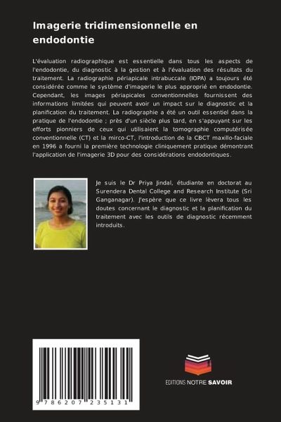 L'évaluation radiographique est essentielle dans tous les aspects de l'endodontie, du diagnostic à la gestion et à l'évaluation des résultats du traitement. La radiographie périapicale intrabuccale (IOPA) a toujours été considérée comme le système d'imagerie le plus approprié en endodontie. Cependant, les images périapicales conventionnelles fournissent des informations limitées qui peuvent avoir un impact sur le diagnostic et la planification du traitement. La radiographie a été un outil essentiel dans la pratique de l'endodontie ; près d'un siècle plus tard, en s'appuyant sur les efforts pionniers de ceux qui utilisaient la tomographie computérisée conventionnelle (CT) et la mirco-CT, l'introduction de la CBCT maxillo-faciale en 1996 a fourni la première technologie cliniquement pratique démontrant l'application de l'imagerie 3D pour des considérations endodontiques.