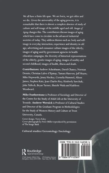 The contributors discuss images of ageing which have come to circulate in the advanced industrial societies today. They address themes such as: body and self-image in everyday interaction; experience and identity in old age; advertising and consumer culture images of the elderly; images of ageing used by Government agencies in Health Education campaigns; the diversity of historical representations of the elderly; gender images of ageing; images of senility and second childhood; and images of health, illness and death.The contributors in this book discuss images of aging which have come to circulate in the advanced industrial societies today. They address such themes as gender images of aging, images of health, illness and death.